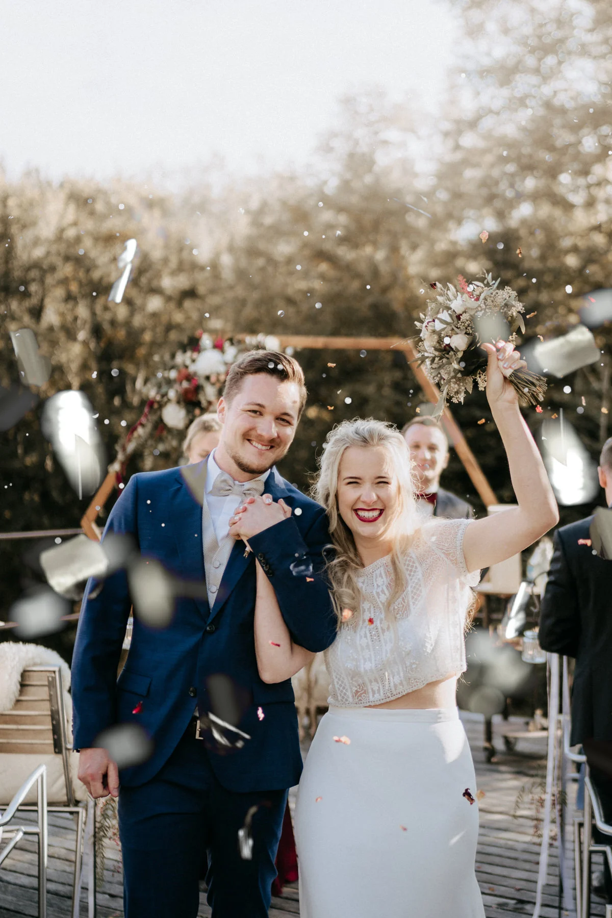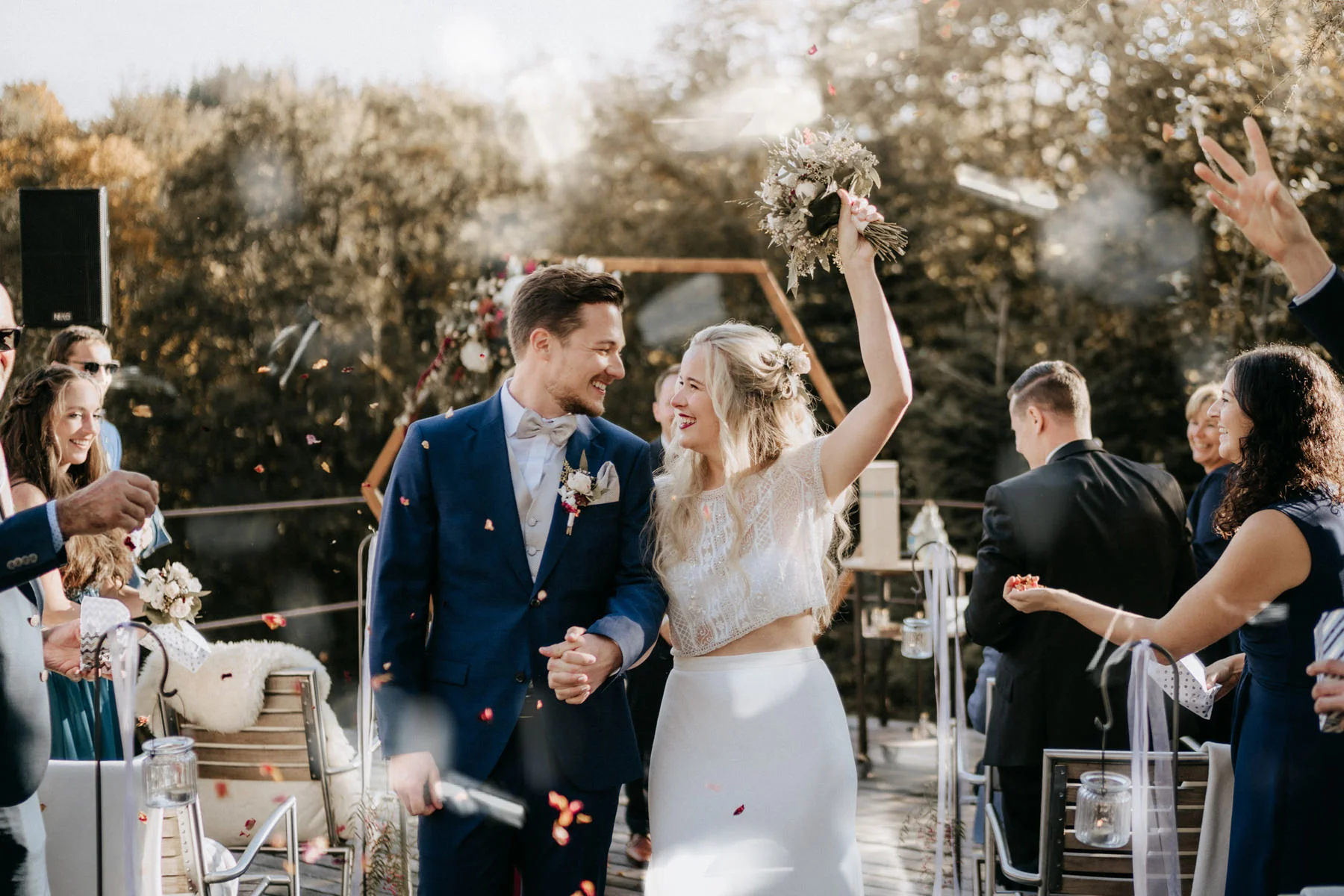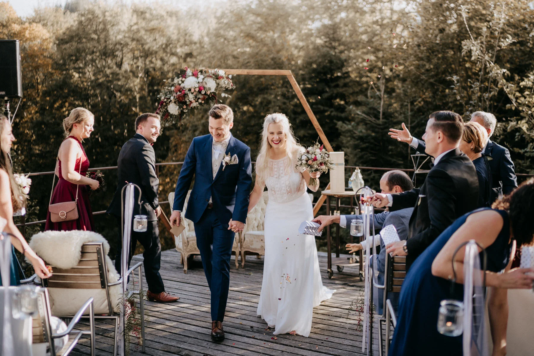 Der Auszug ist der emotionale Schlusspunkt eurer Zeremonie – und bietet eine perfekte Gelegenheit für lebendige, dynamische Fotos. Lasst eure Gäste einen Spalier machen. Lasst euch mit Blüten bewerfen oder durch Seifenblasen tanzen. Das sorgt für Bewegung, Lichtreflexe und echte Jubel-Stimmung.