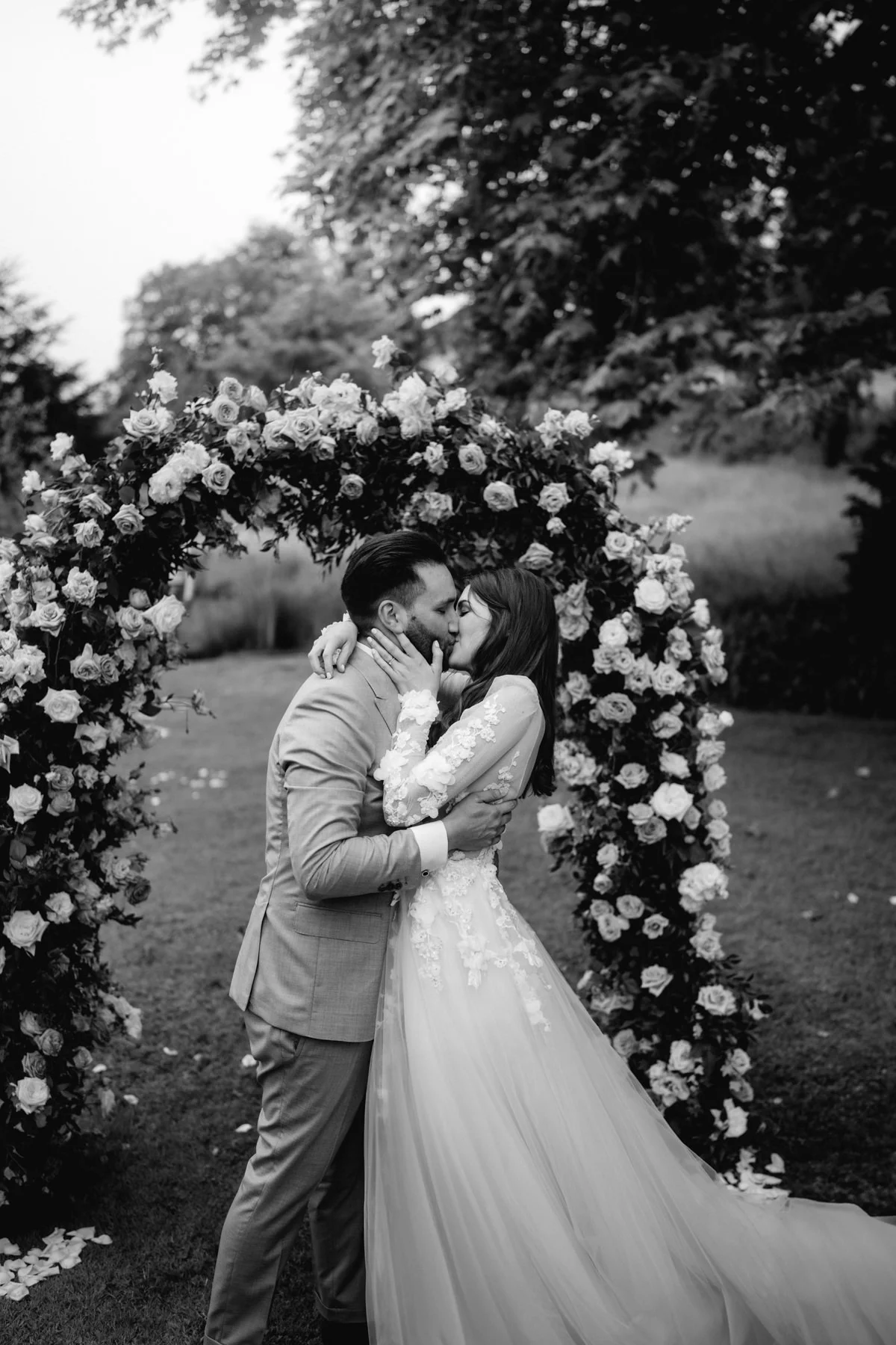 Der erste Kuss als Ehepaar ist ein absoluter Lieblingsmoment – und der gehört zelebriert! Verliert euch in der Umarmung, benutzt eure Hände, zieht euch nahe zueinander. Ein zu kurzer, flüchtiger Schmatzer ist doch viel zu schnell vorbei – oder?